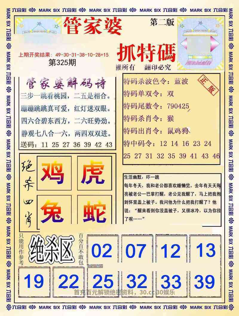 326期:中特两句经/管家婆玄机/龙仔凑热闹/彩霸王出肖料/狗不理